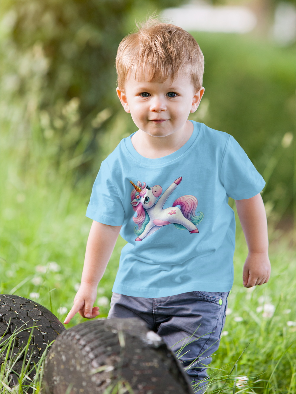 Cvičící jednorožec #2 NEBESKY MODRÉ dětské tričko